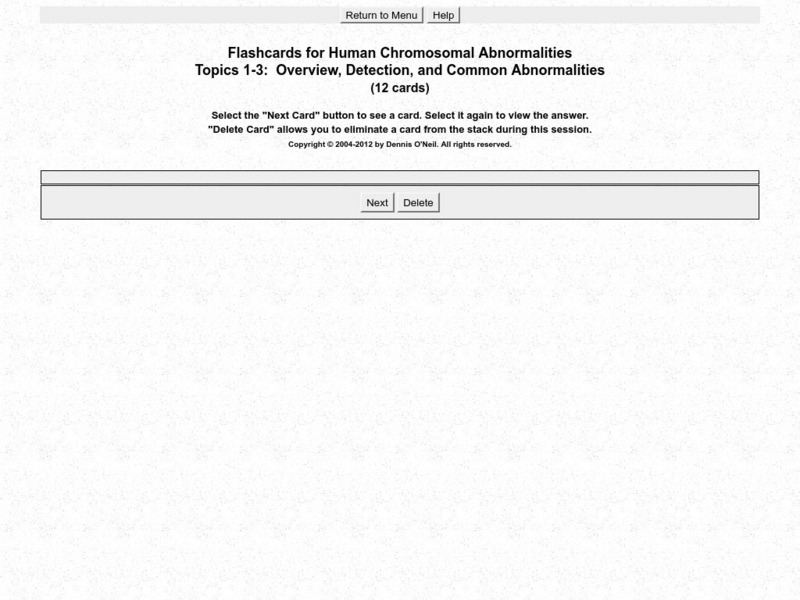 Great for a quick check of facts related to detection and common abnormalities. Use these for a test review.