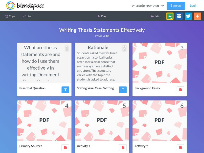 A twelve-part learning module with links to texts and websites to use while learning how to write a strong and effective thesis statement.