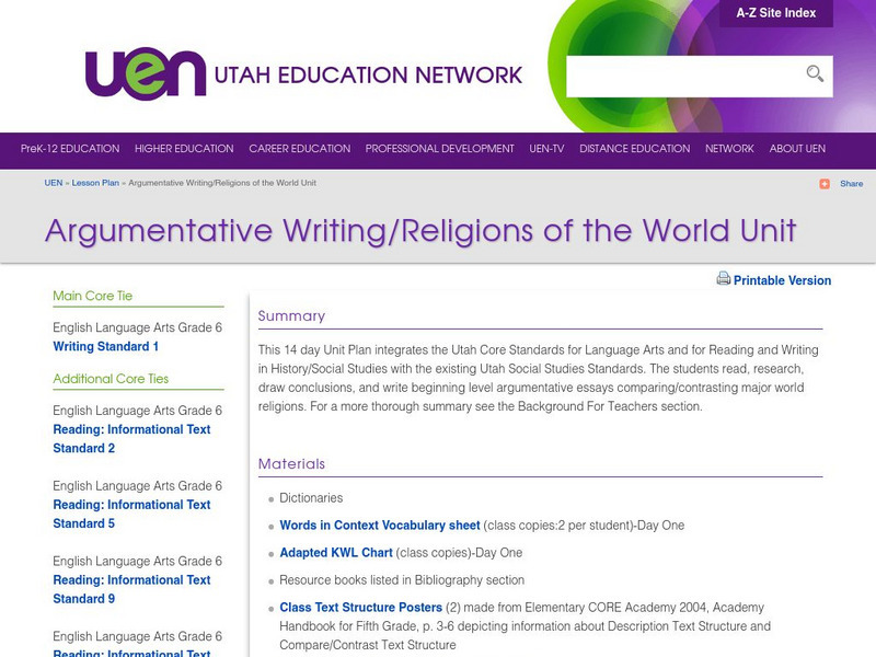 Uen: Argumentative Writing/wwi & Wwii Unit