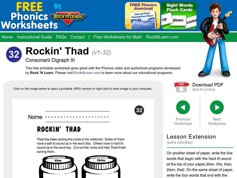 This printable worksheet from Rock 'N Learn can be used as a reinforcement activity or as an assessment. Students will look at a series of pictures with digraphs and then identify each picture that start with the /th/ digraph. An answer...