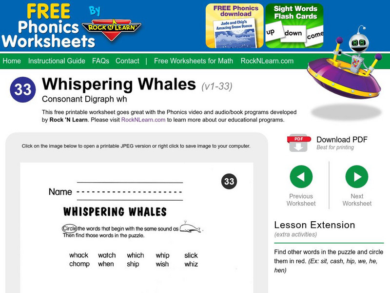 This printable letter worksheet from Rock 'N Learn can be used as a reinforcement activity or as an assessment. Learners will look for hidden words that start with the /wh/ digraph. An answer key and lesson extension are included.