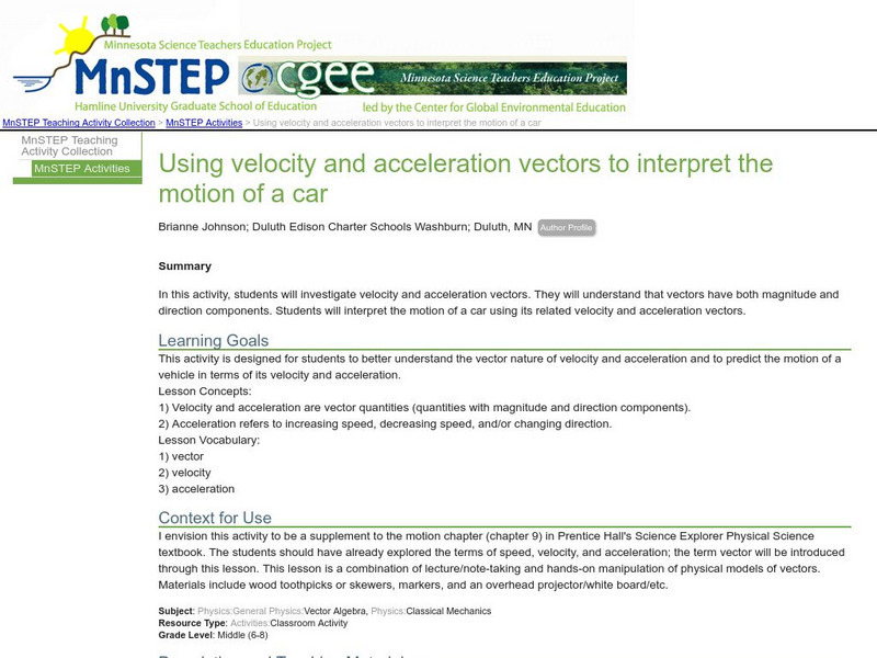 Students understand that vectors have both magnitude and direction components as they investigate velocity and acceleration vectors.