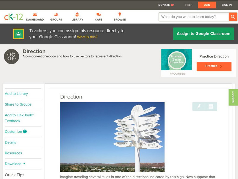 [Free Registration/Login may be required to access all resource tools.] Explores direction and why it is important, direction as a component of motion, and how to represent direction and distance with vectors.