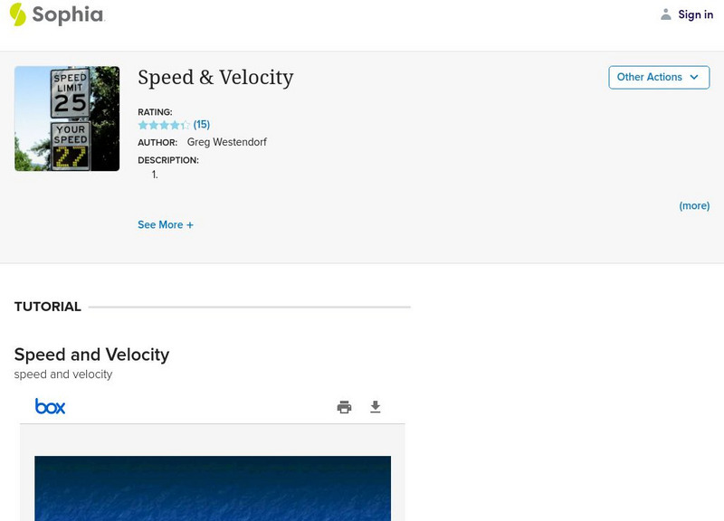 A slide show with three accompanying video lesson segments illustrating the difference between speed and velocity, and demonstrating how to calculate average speed and velocity. [6:31]