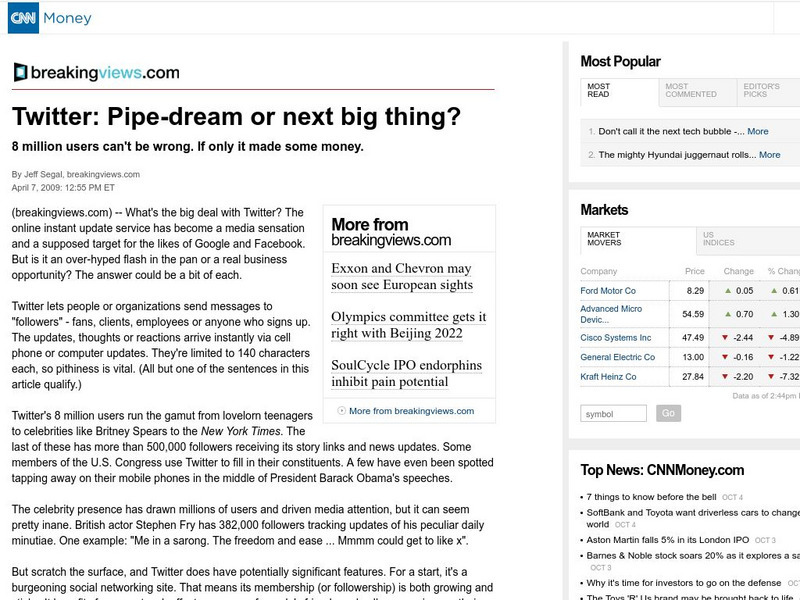 Cnn Money: Twitter, Pipe Dream or Next Big Thing?
