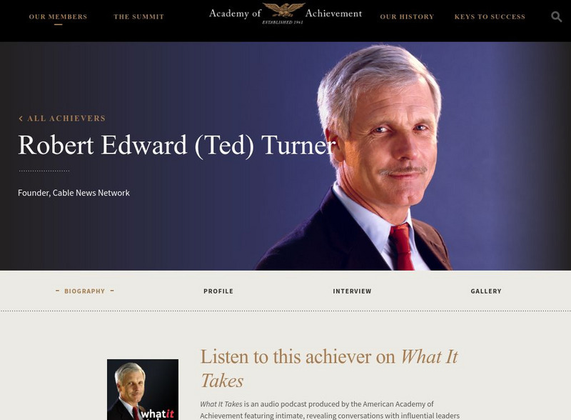 A biography of Ted Turner, founder of the Cable News Network, popularly known as CNN. He is also recognized as a generous philanthropist. Includes a profile, videos, and a photo gallery.
