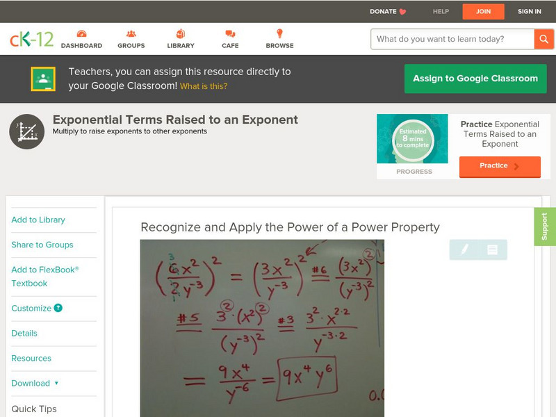 Ck 12: Algebra: Exponential Terms Raised to an Exponent
