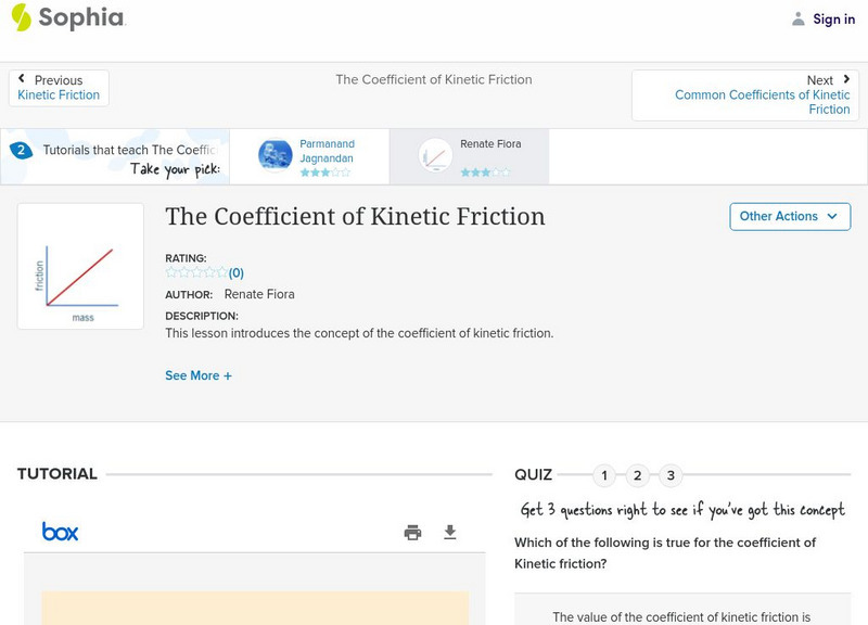 Sophia: Common Coefficients of Static Friction: Lesson 2