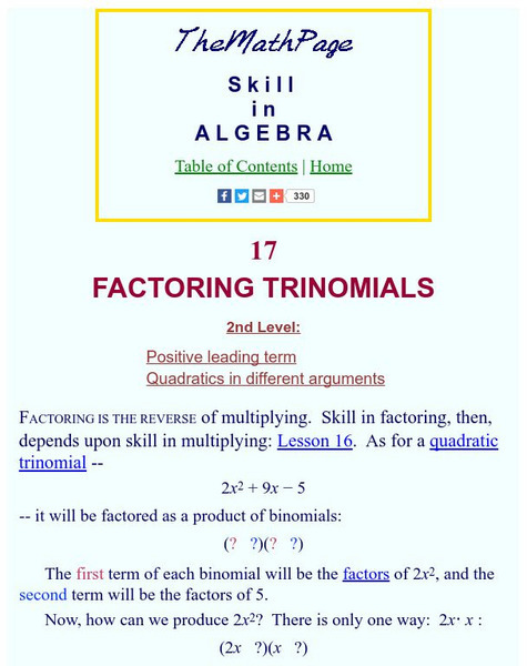 The Math Page: Skill in Algebra: Factoring Trinomials