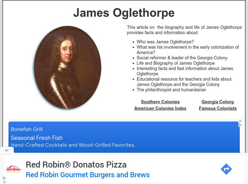 Overview and biographical facts on the life of James Oglethorpe, founder of the colony of Georgia.