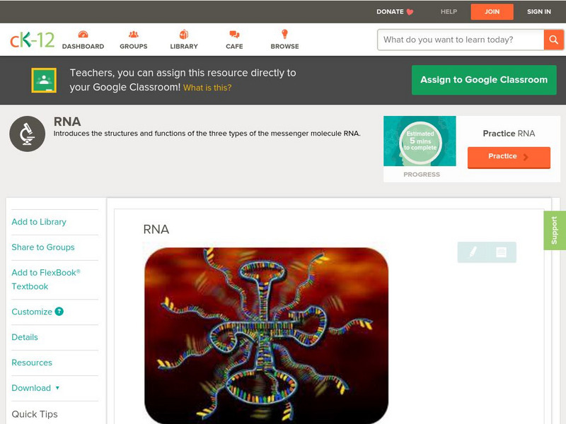 [Free Registration/Login may be required to access all resource tools.] Overview of RNA and its three main types.