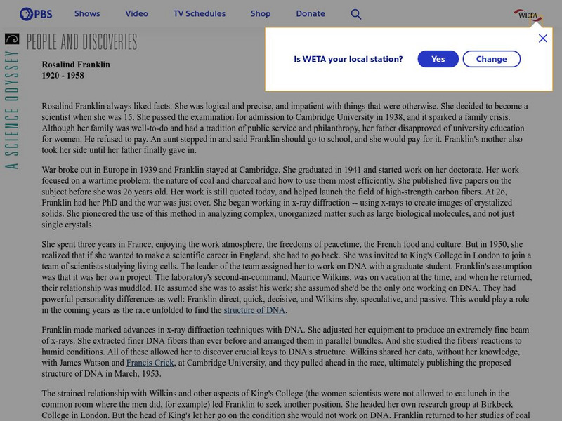 PBS People and Discoveries offers an excellent, if brief, sketch of Rosalind Franklin's character and life.