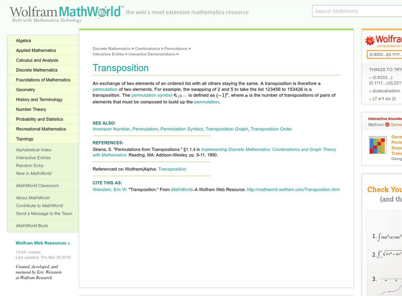 Wolfram Math World: Transpositions