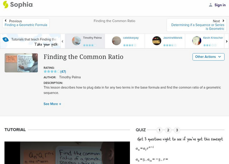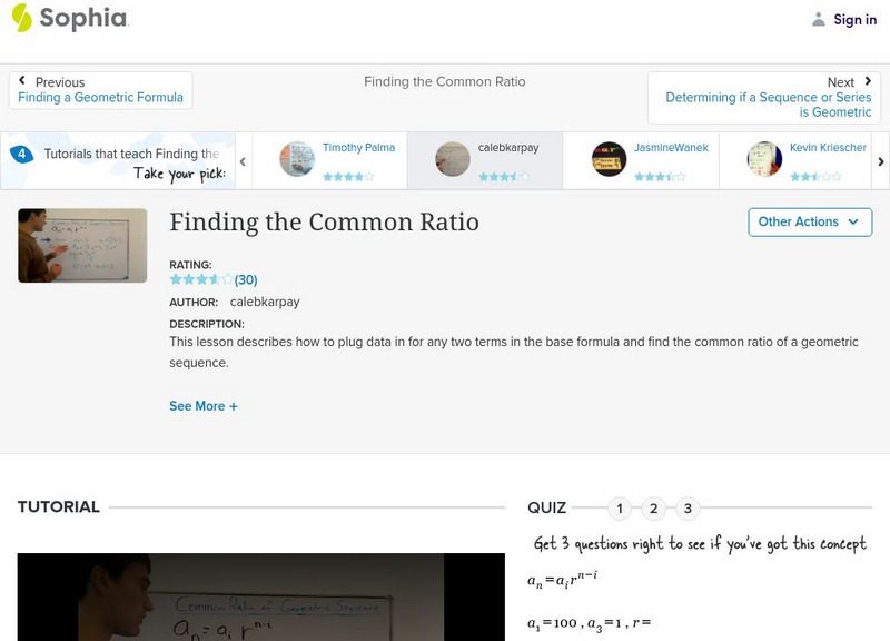 This lesson describes how to plug data in for any two terms in the base formula and find the common ratio of a geometric sequence. It is 2 of 9 in the series titled "Finding the Common Ratio."