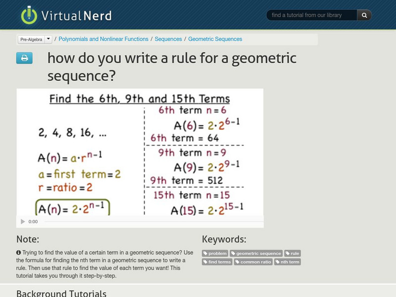 Virtual Nerd: How Do You Write a Rule for a Geometric Sequence?