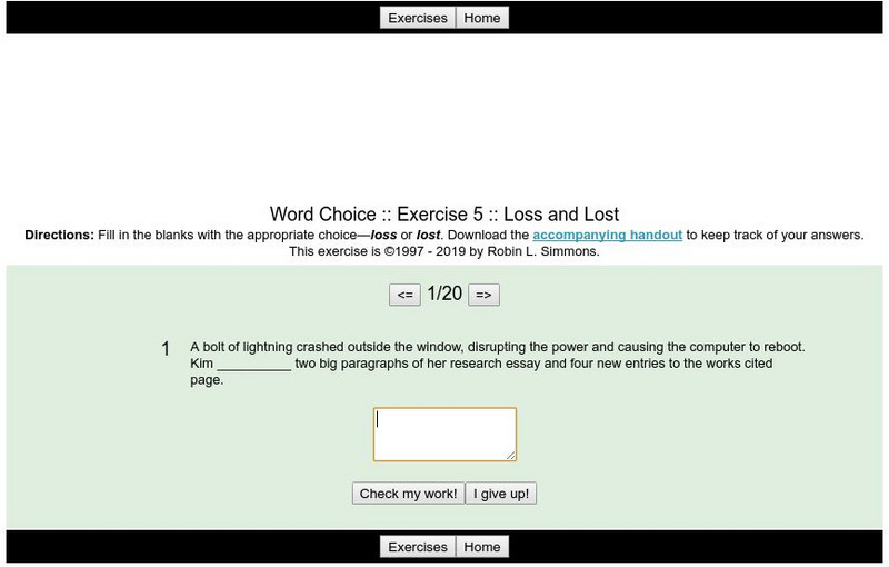 Grammar Bytes: Word Choice: Exercise 5: Loss and Lost