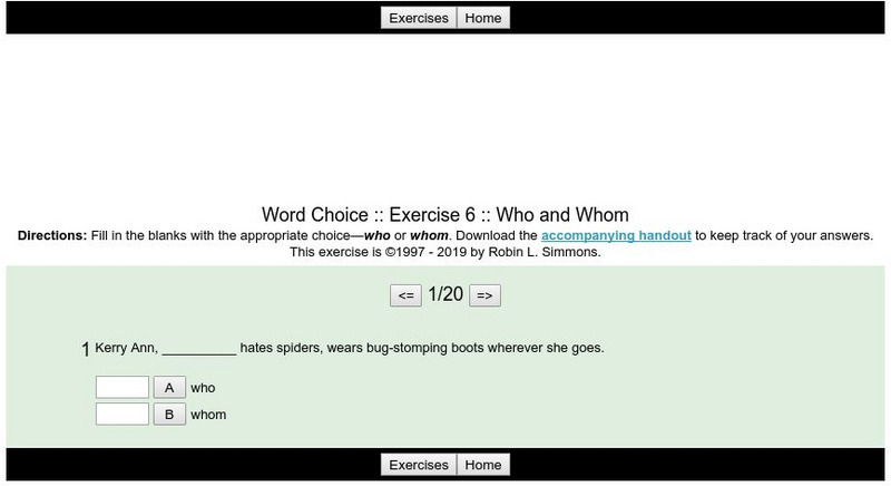 Grammar Bytes: Word Choice: Exercise 6: Who and Whom