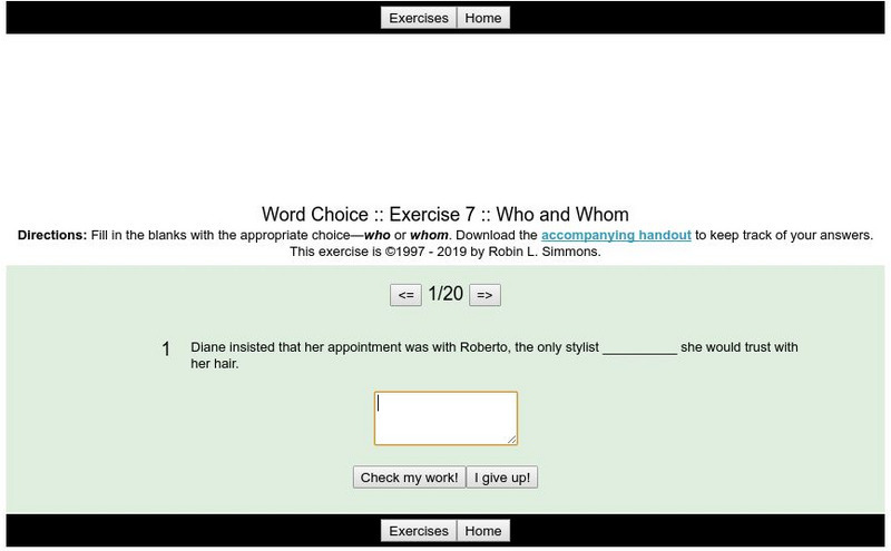 Grammar Bytes: Word Choice: Exercise 7: Who and Whom