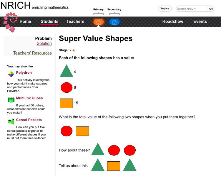 On this one page website sharpen your logic and addition facts skills while working on this challenge. The solution is available to double check your solution.
