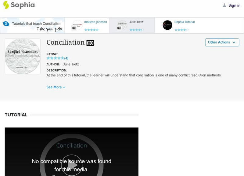 At the end of this tutorial, the learner will understand that conciliation is one of many conflict resolution methods. It is 2 of 4 in the series titled "Conciliation."
