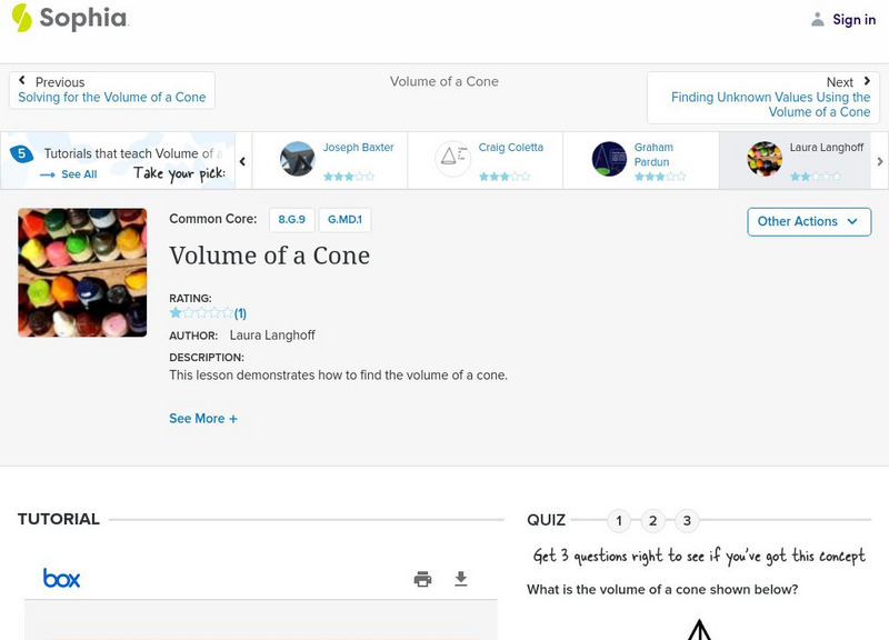Sophia: Volume of a Cone: Lesson 3