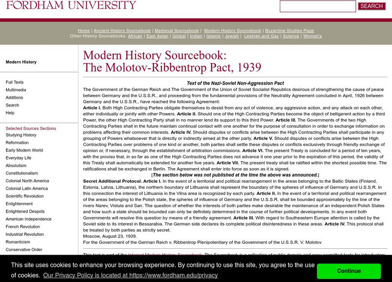 Fordham University: Modern History Sourcebook: The Molotov Ribbentrop Pact