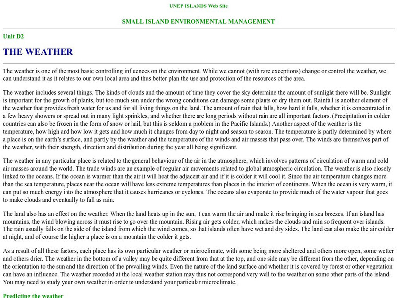This site offers information on the effects of weather on islands. There is some mention of sea breezes.