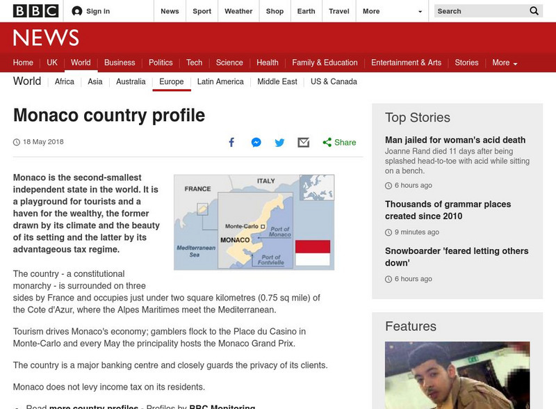 The BBC features an overview on the constitutional monarchy of Monaco including key facts, historical background, information on political leaders and the news media, and a timeline of key events. Also provides links to recent news...