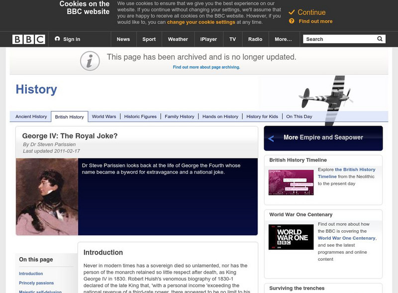 An article about the self-indulgent reign of King George IV of England. Archived.