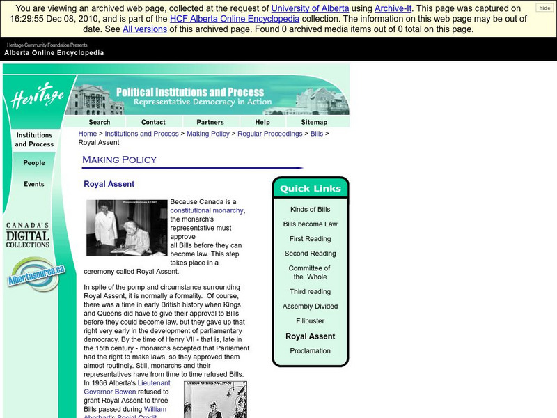 Alberta Online Encyclopedia: Alberta Heritage: Royal Assent