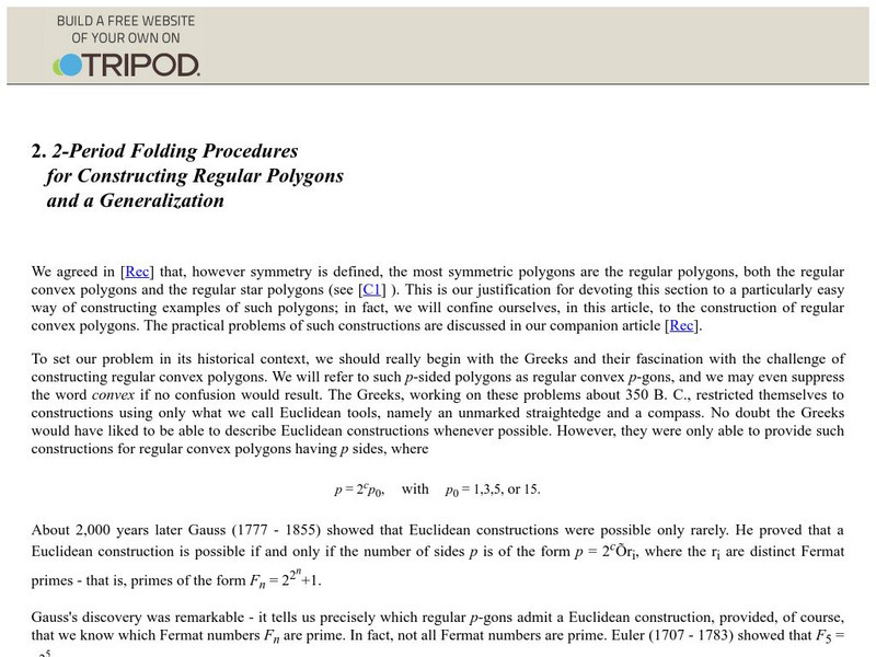 [Free Registration/Login may be required to access all resource tools.] This study guide focuses on polygons: convex vs concave, interior and exterior angles, and basic terminology for common polygons.