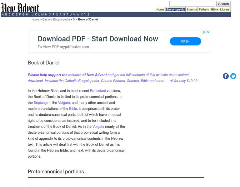 A long and in-depth look at the book of Daniel, its main religious significance and themes. Please note that ?The Catholic Encyclopedia? is a historic reference source and should be viewed in the context of resource material dated around...