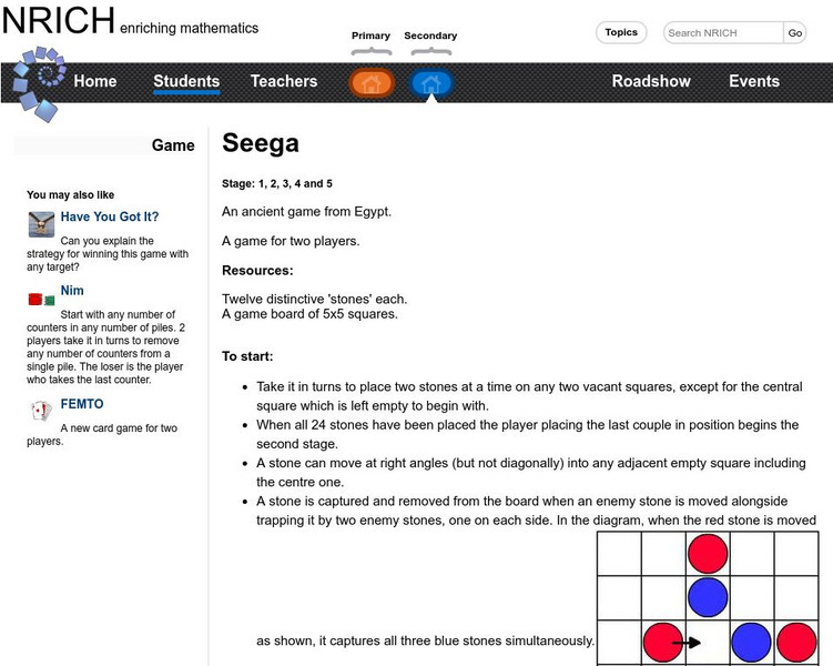 University of Cambridge: Nrich: Games Seega: An Egyptian Game