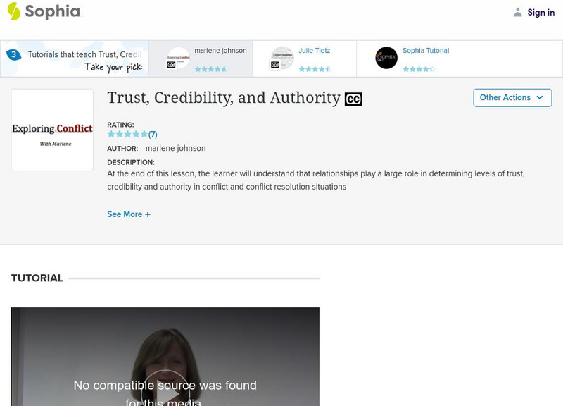 At the end of this lesson, the learner will understand that relationships play a large role in determining levels of trust, credibility and authority in conflict and conflict resolution situations. It is 2 of 3 in the series titled...