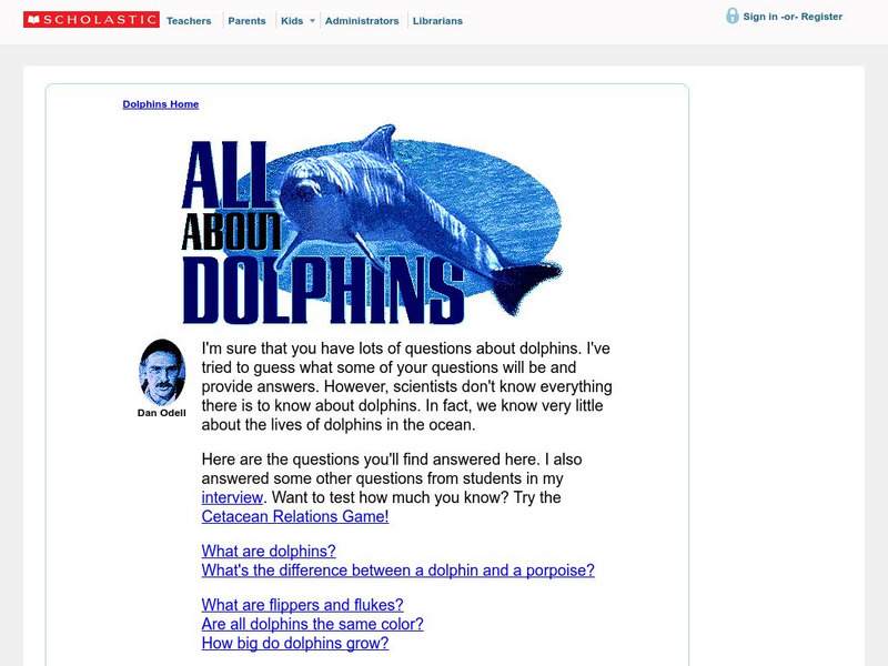 An informative site about dolphins by Scholastic. Great links to activities and games, other web links about dolphins and a teacher page.