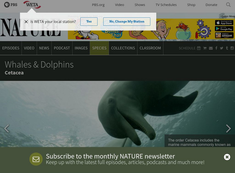 Great interactive site for elementary and middle school students. Learn about the order cetaceans, mysticetes, odontocetes, (baleen whales and toothed whales) and bottlenose dolphins. Then play some interactive games after learning about...