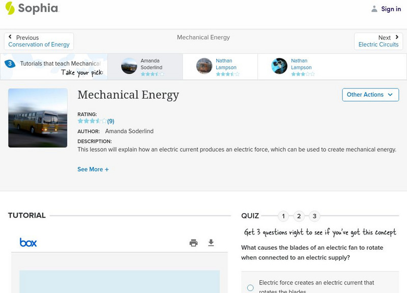 This lesson will explain how an electric current produces an electric force, which can be used to create mechanical energy. It is 2 of 4 in the series titled "Mechanical Energy."
