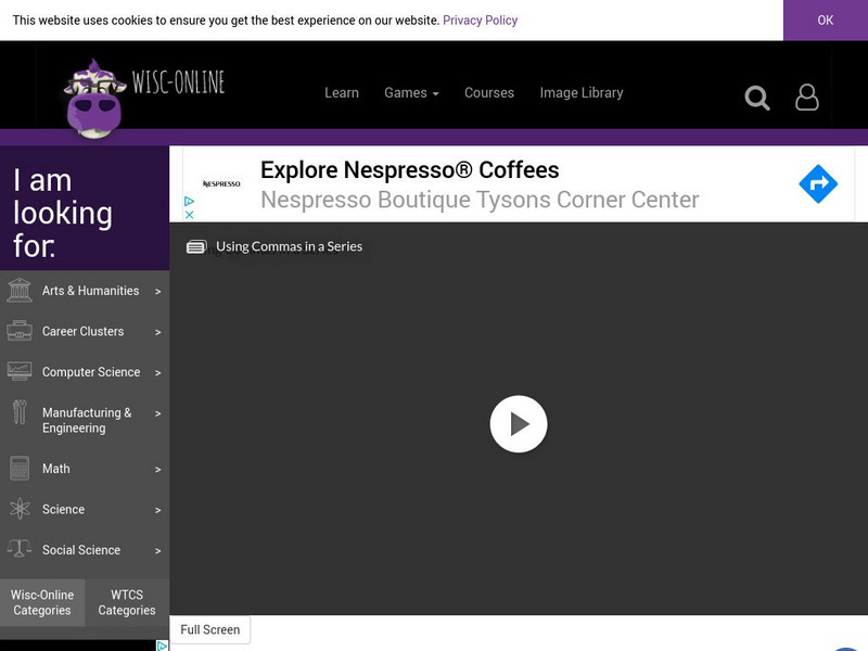 In this learning module, students read about the rules for using commas to divide nouns, verbs, and adjectives when the words are written in a series. They insert commas in a practice exercise with 25 questions and receive immediate...