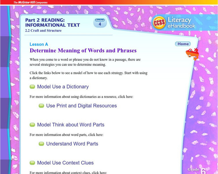 Mc Graw Hill: Informational Text: Determine Meaning of Words and Phrases