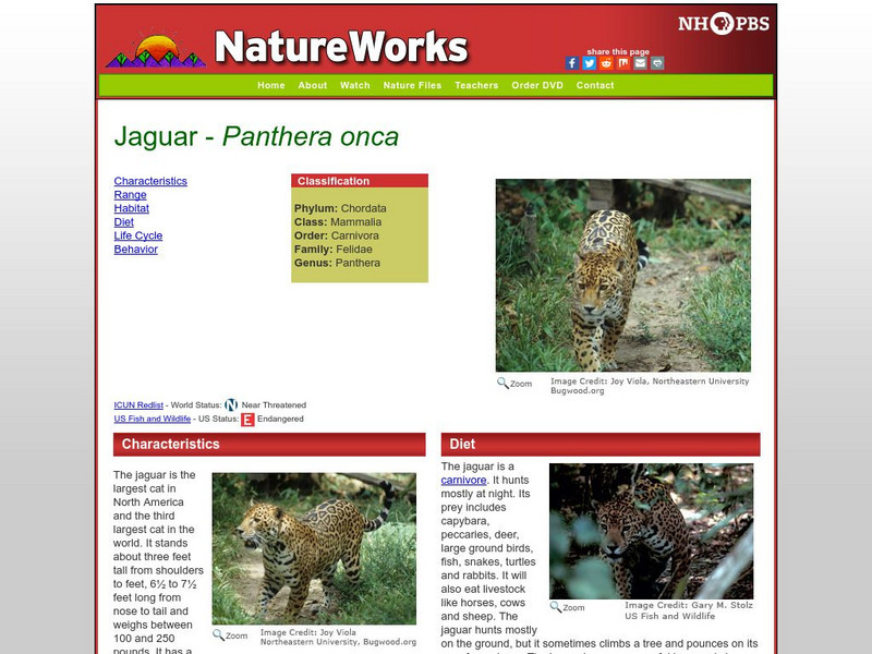 This resource provides information about jaguars such as diet, population, behavior, and more.