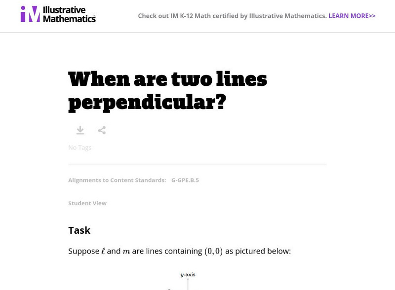 Illustrative Mathematics: G Gpe When Are Two Lines Perpendicular?