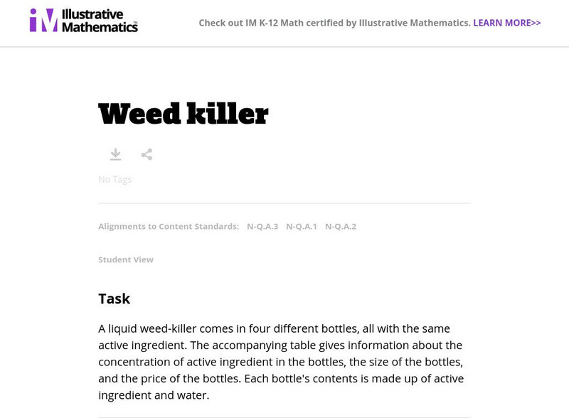 Illustrative Mathematics: N q.a.3, N q.a.1, N q.a.2: Weed Killer