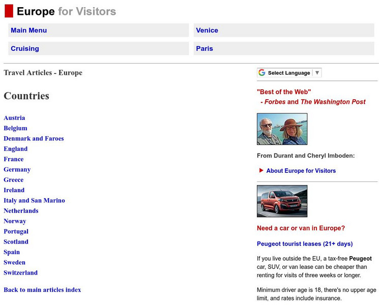 This resource is a commercial travel resource that features links to information about the countries of Western Europe. Photographs are included throughout.