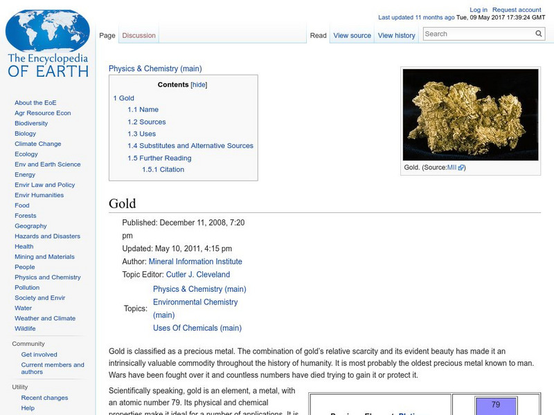 Chemicool.com offers a quick look at the element gold. Includes natural abundance data and approximate cost.