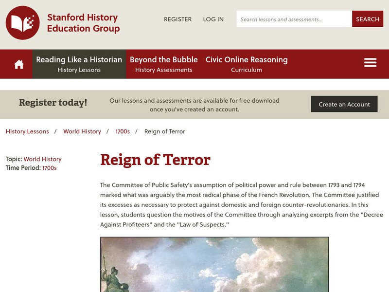 [Free Registration/Login Required] Examining bits from the "Decree Against Profiteers" and "Law of Suspects," students will learn the impact of the Committee of Public Safety's power to rule during the most intense year of the French...