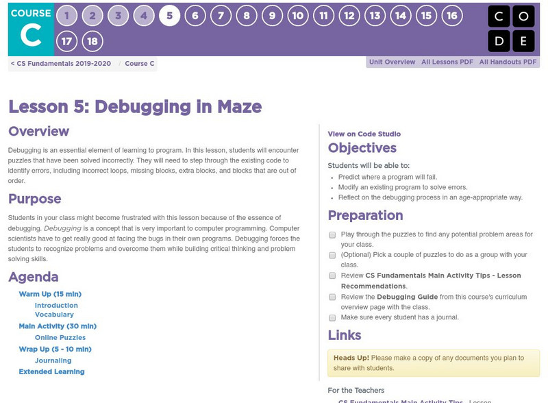 Students in your class might become frustrated with this lesson because of the essence of debugging. Debugging is a concept that is very important to computer programming. Computer scientists have to get really good at facing the bugs in...