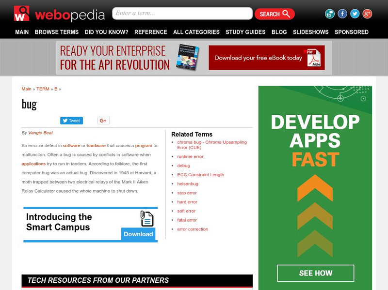 Offers a short, concise definition of the typical software or hardware bug. Provides hyperlinked terms, also.