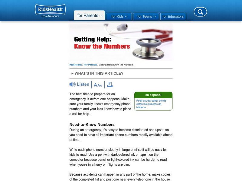 What numbers should you always have handy in case of emergency? This website provides a list of phone numbers you could need in case of poisoning, fire, injuries, or crime. Click to the "Emergency Contact Sheet," print it out, and fill...