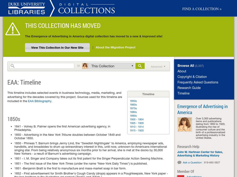 This timeline includes selected events in business technology, media, marketing, and advertising for 1850-1920.