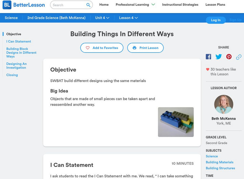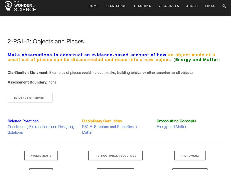 This NSTA vetted source includes resources to show that an object made up of a small set of pieces can be disassembled and made into a new object. Included are assessment ideas, videos, examples, lesson plans, and photos of student work.
